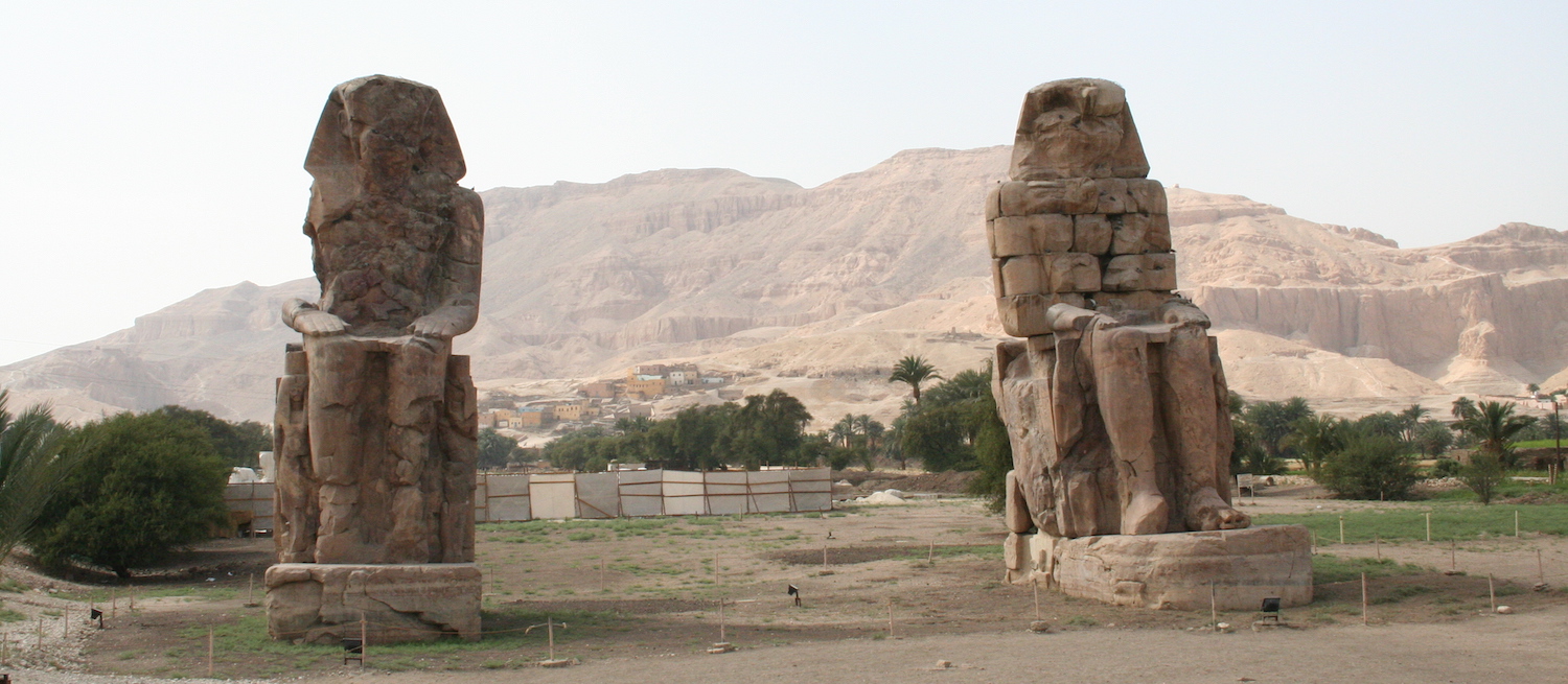 Petit stop devant les colosses de Memnon avant de rejoindre la vallée des rois et des reines.