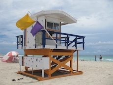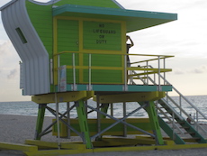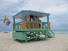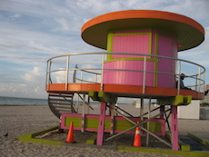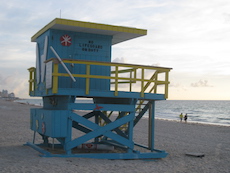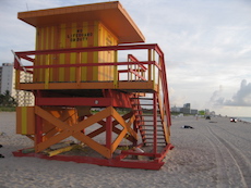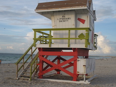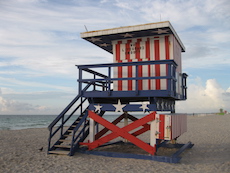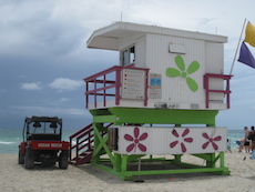 Sur la plage de Miami Beach, les cabanes de sauveteurs sont plus belles les unes que les autres. Les photos ont été prises trop tôt le matin pour apercevoir des sauveteurs !