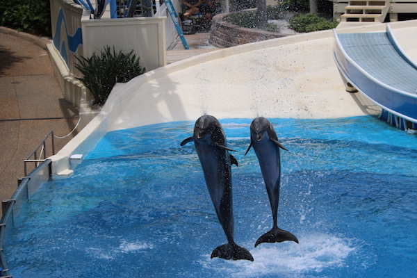 Une journée à Sea World. C'est un parc pour les grands et les petits. Il est très difficile d'être déçu. Il y a des attractions à sensations, un show avec des dauphins, un autre gigantesque avec des Shamus, un spectacle très coloré avec lions de mer, un autre avec des chiens, des animaux marins de toutes sortes à observer ou toucher, ... .