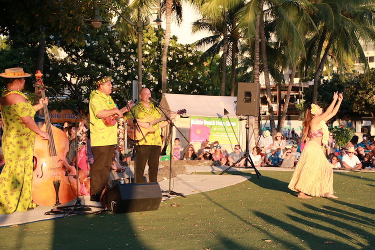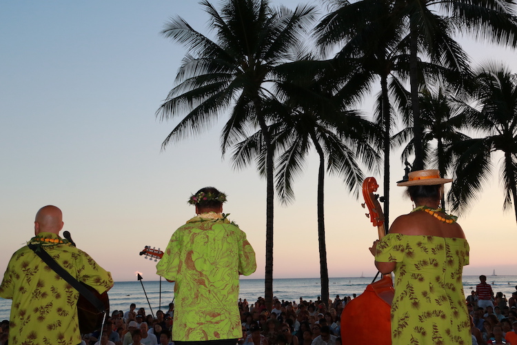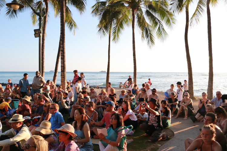De retour à Honolulu, nous avons assisté à un spectale de Hula sur Waikiki Beach. Vous pouvez consulter les jours et heures des spectacles sur le site : Kuhio Beach Torch Lighting & Hula Show.
