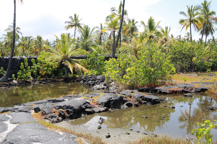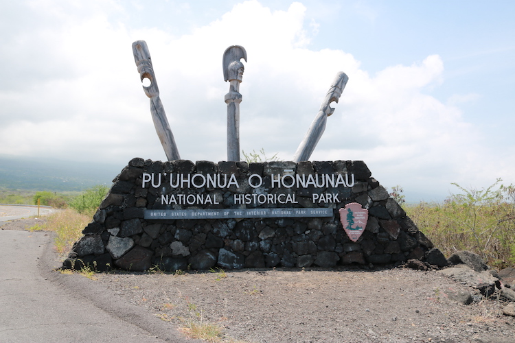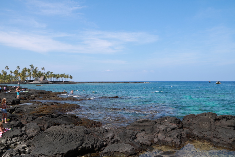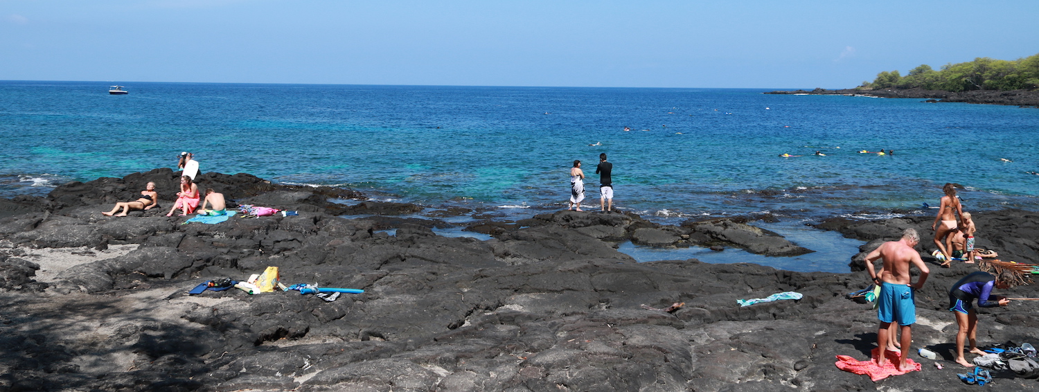 Sur le site du parc Pu'uhonua O Honaunau, tout d'abord le parc lui-même mais, sur la droite juste avant d'arriver, une plage réputée pour la présence de dauphins. Il est conseillé de se garer sur le parking du parc et de se rendre à pieds sur cette plage (il n'y a pas de sable, juste des rochers) ... mais à ne surtout pas rater !