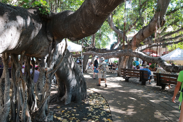 Fin de la balade sur une place occupée entièrement par un immense "Banyan Tree".