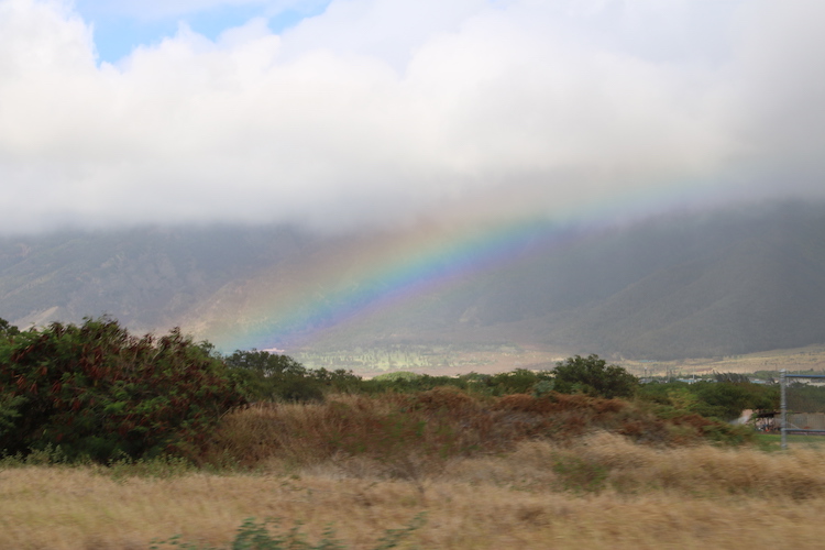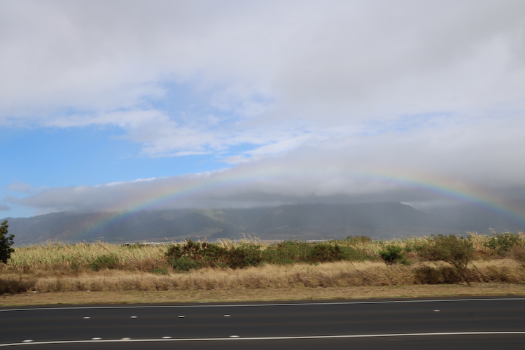 Le ciel, comme sur l'ensemble des îles d'Hawaii, est très différent d'un endroit à l'autre. Et ce matin, en passant vers Kahului, nous avons croisé de superbes arcs-en-ciel !