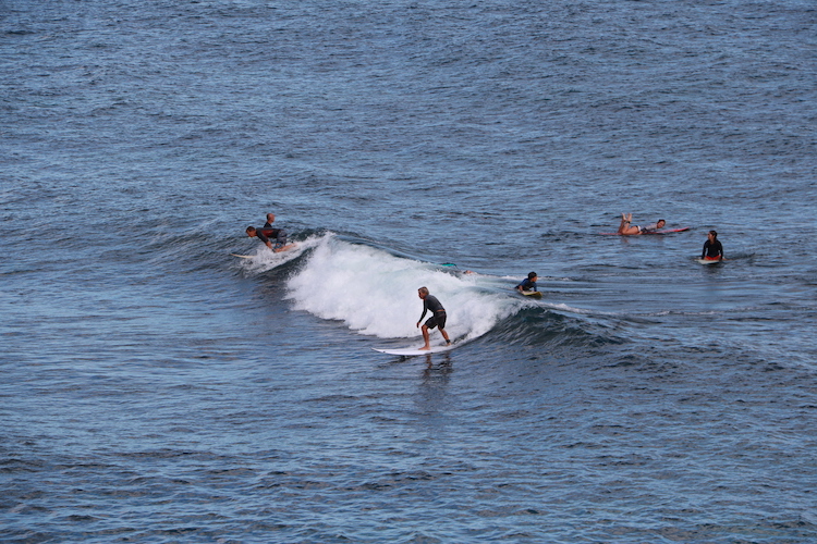 Premier stop à "Hookipa Park" (point B sur la carte) pour admirer de "vrais" surfeurs ... ils passent quand même 98% de leur temps à attendre la vague ☺ !