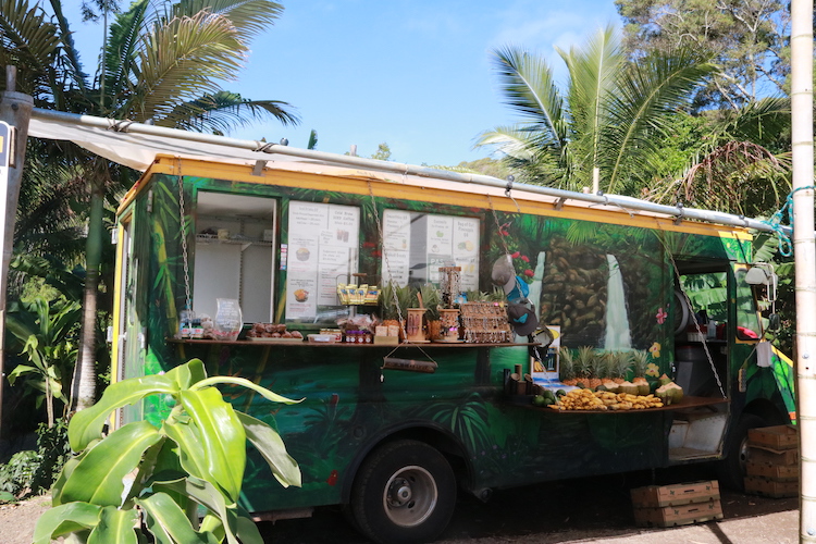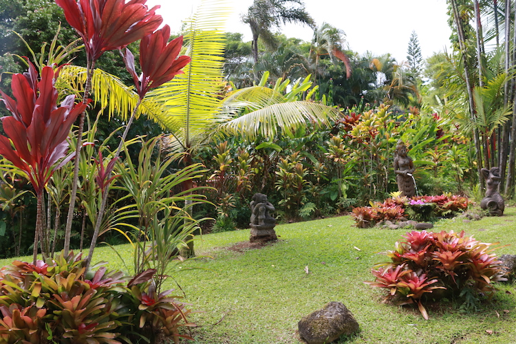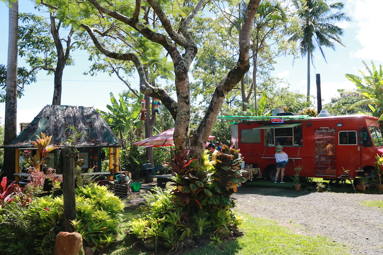Un stop au "Ke'anae Arboretum" (point E sur la carte) mais la visite était vraiment trop chère ... on s'est contenté de l'entrée et d'un petit café au "Coconut Cafe at The Garden of Eden" (un peu cher également).