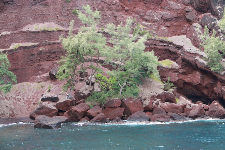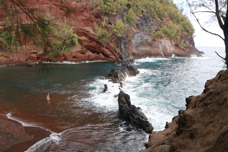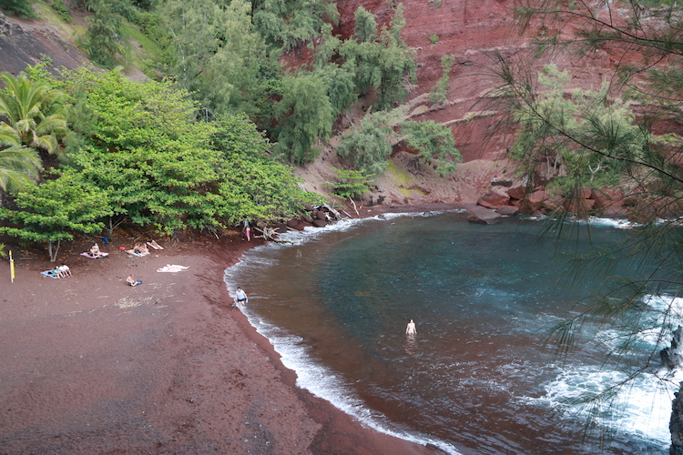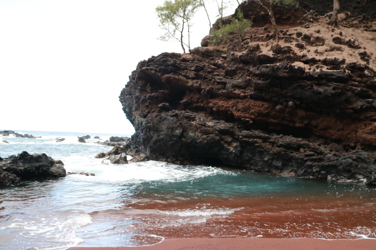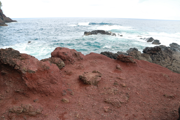 Il n'y a pas vraiment de parking, le chemin d'accès à cette plage de sable rouge est plus adapté à des baskets qu'à des tongs, mais le site vaut le détour.