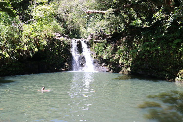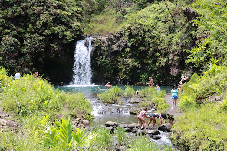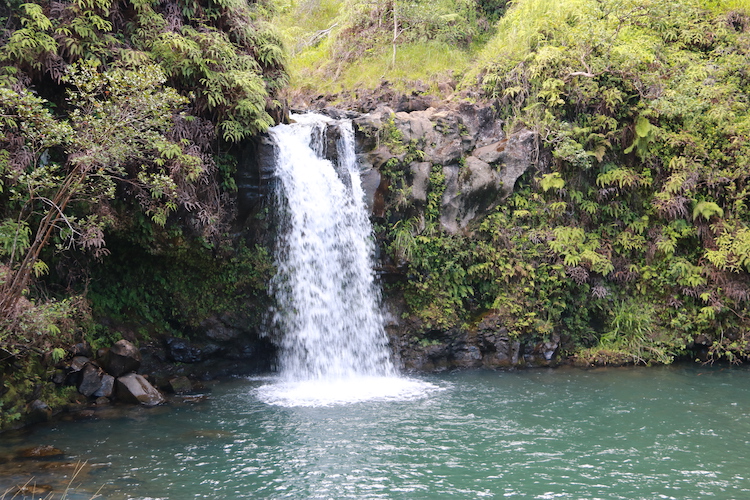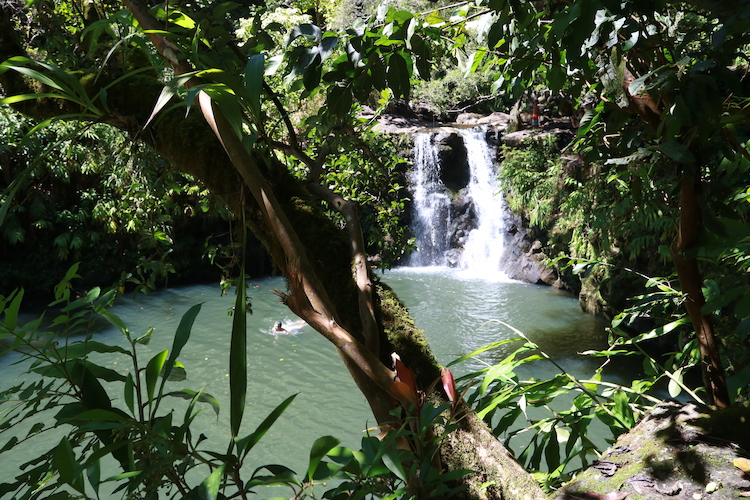 Objectif du jour : la route dîte de Hana. La route en elle-même est jolie, mais ce sont surtout les différents points d'intérêt tout au long du trajet qui sont à voir. Le problème est qu'il est souvent difficile de se garer car peu de réels parkings. Le deuxième problème est qu'il n'est pas possible de rentrer en passant par le Sud de l'île => il faut faire la route en sens-inverse le soir ... et il y a pas mal de circulation ! Prévoir un pique-nique pour le déjeuner.