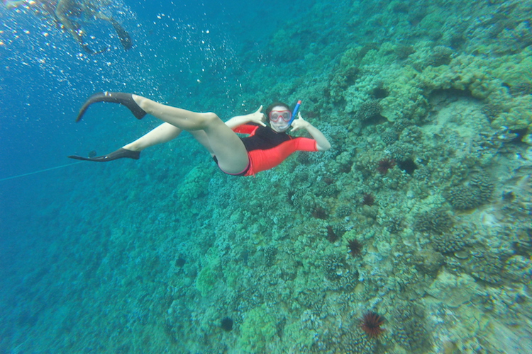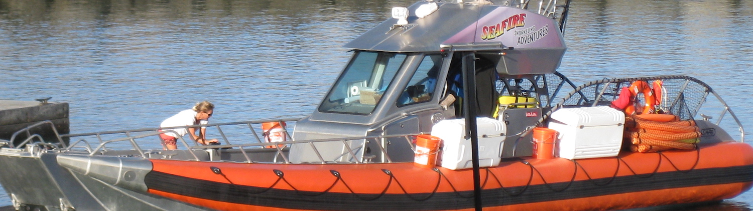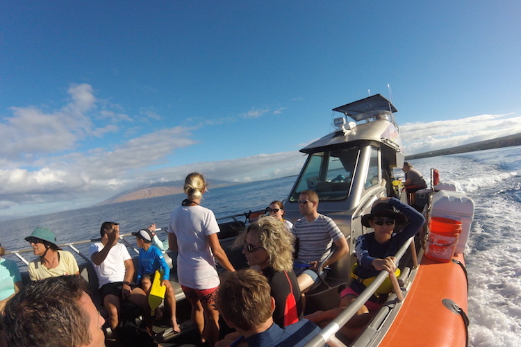 Il y a de nombreuses compagnies qui proposent du snorking à Molokini Crater; nous avons choisi Seafire Charters un peu au hasard mais c'est exactement ce que nous voulions ... pas trop de temps à naviguer (certains proposent des excursions de plusieurs heures avec repas mais impossible pour nous à cause du mal de mer de ma femme), un bateau assez rapide, juste du snorkeling et un équipage top sympa.