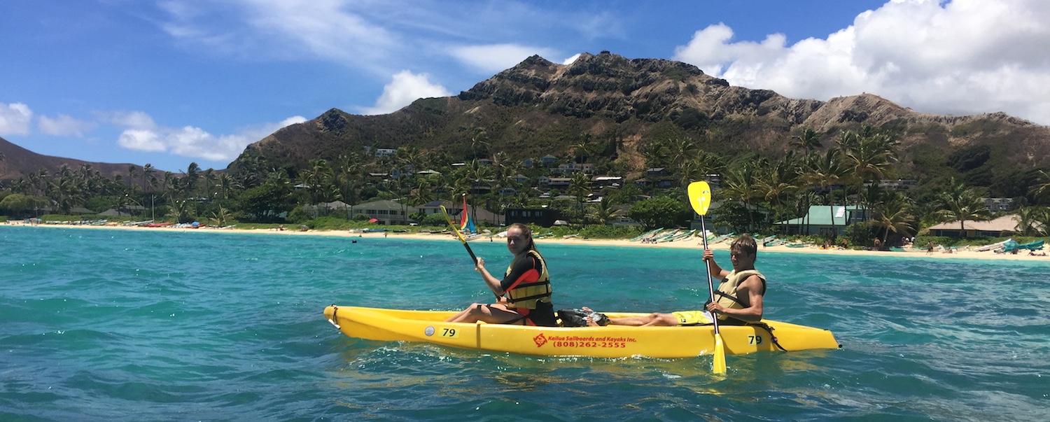 Nous avons loué des canoës à Kailua Beach Adventures ... a priori c'est le loueur le plus "proche" de la plage ! Nous sommes partis de Kailua beach en canoës et avons rejoint Lanikai beach en passant vers "Mokulua Islands".