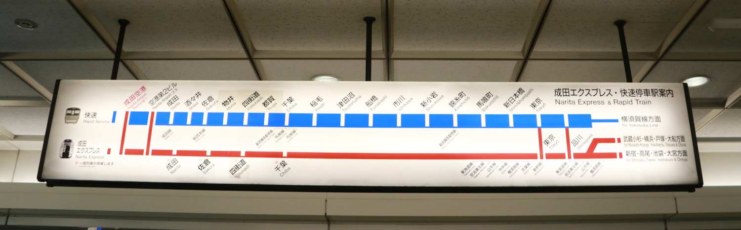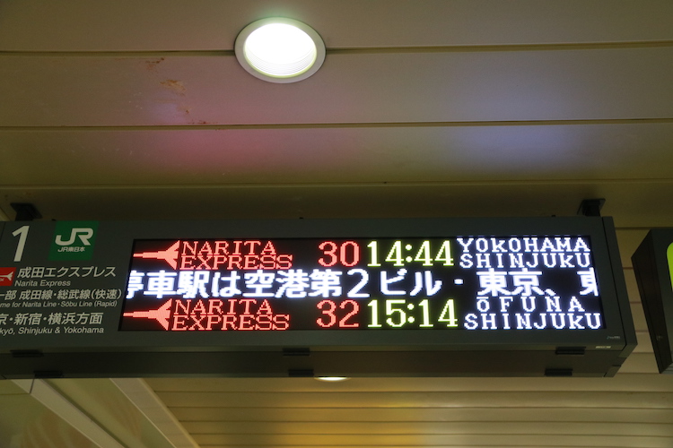 Après la douane et la récupération de nos bagages, direction le JR EAST Travel Service Center pour récupérer nos JR Pass en échange des billets achetés et reçus avant notre départ. A ce même guichet, nous avons réservé nos sièges pour le trajet vers Tokyo avec le Narita Express Train (trajet inclu dans le JR Pass mais réservation de sièges obligatoire).