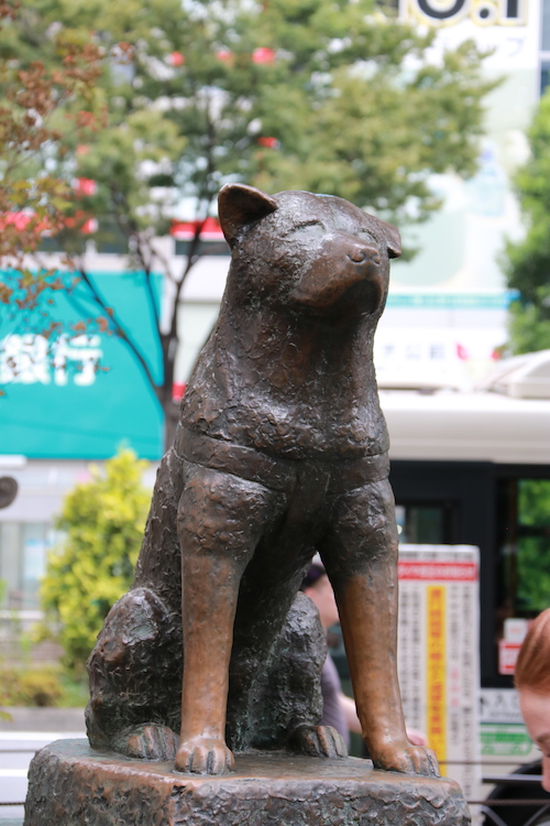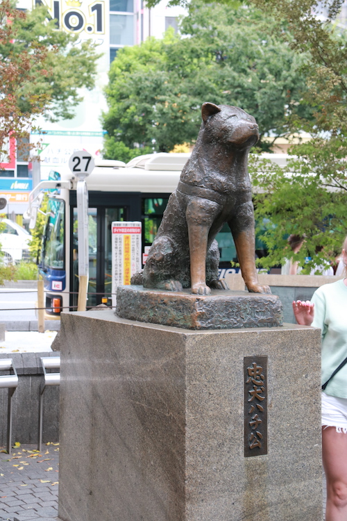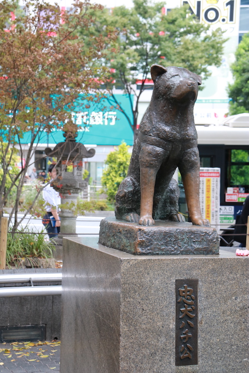 La statue du chien Hachiko se trouve sur la place à la sortie de la gare de Shibuya. Pour la petite histoire, cette statue est en hommage à ce chien qui attendait son maître tous les jours à la gare de Shibuya et a continué à le faire même après la mort de celui-ci.