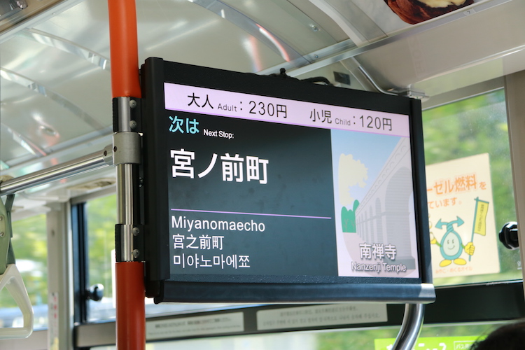 Tous nos déplacements se font avec les lignes de bus JR à partir de la gare de Kyoto :