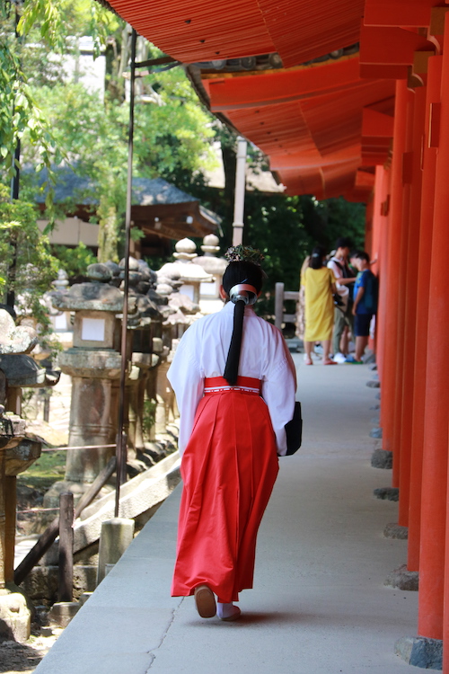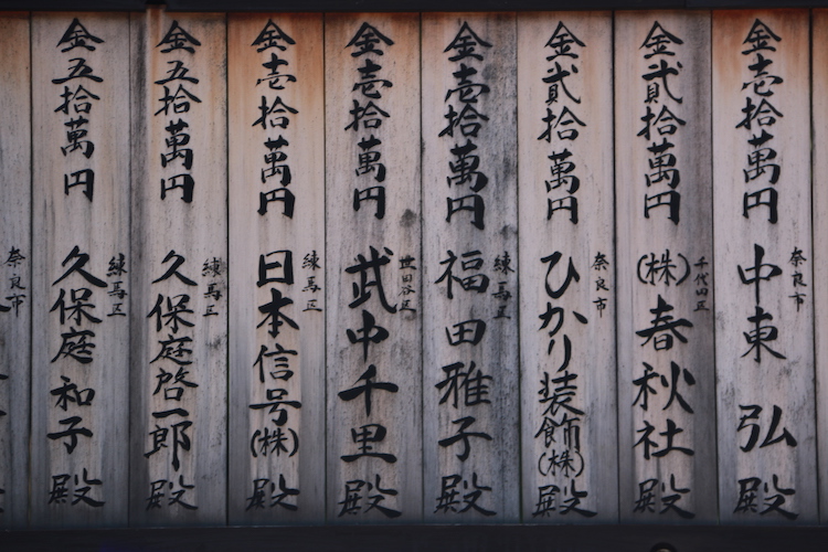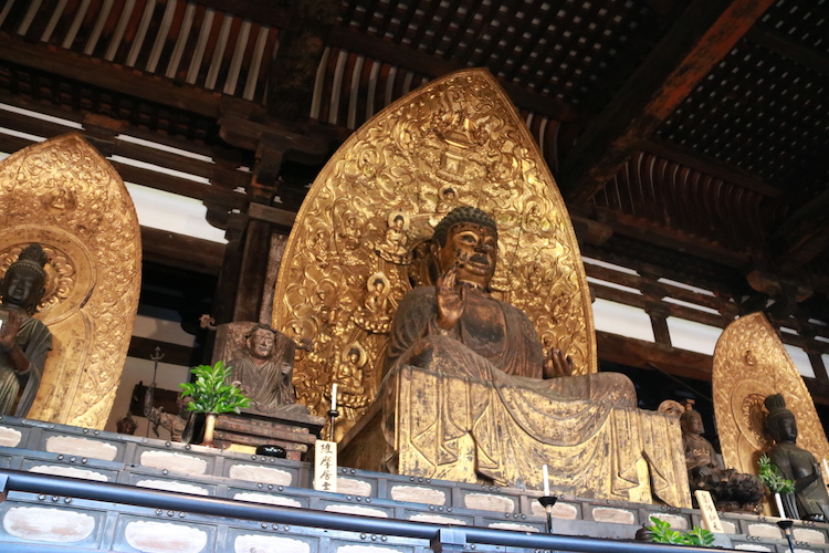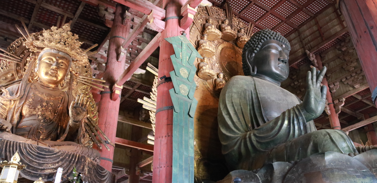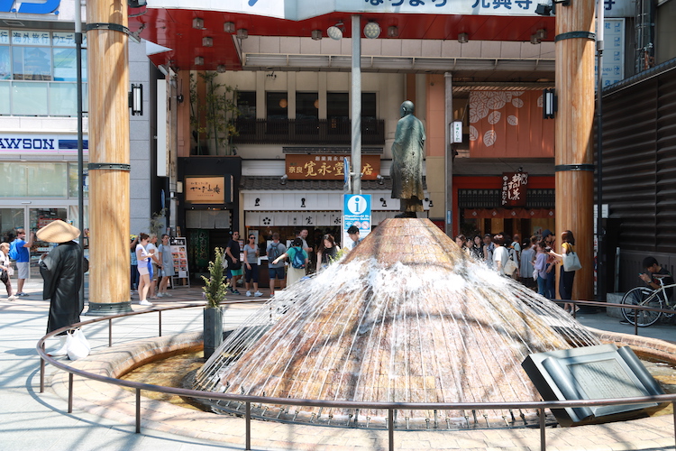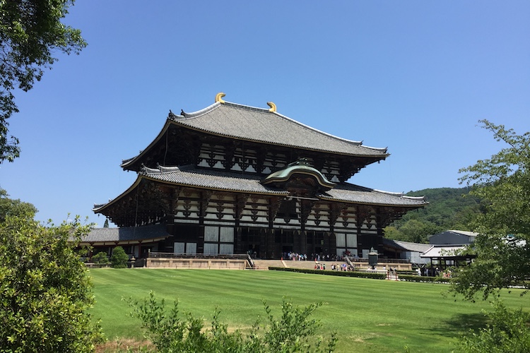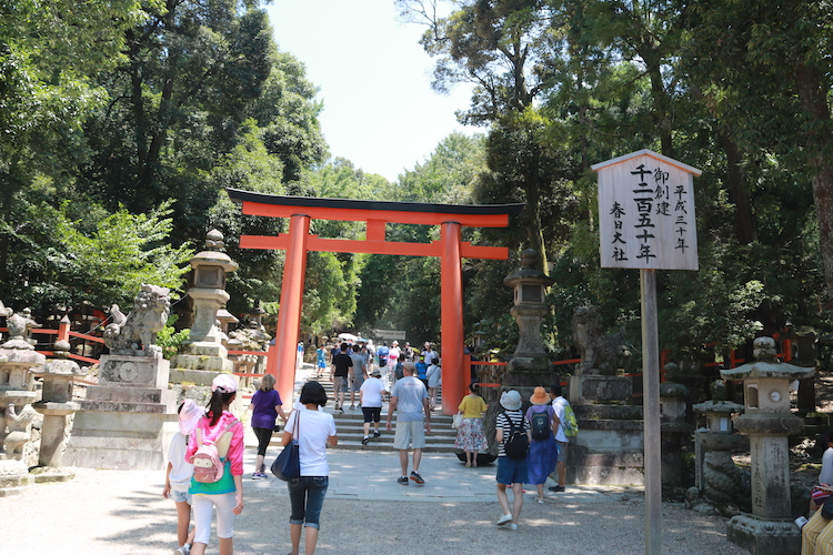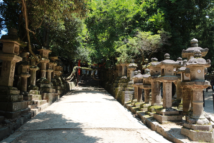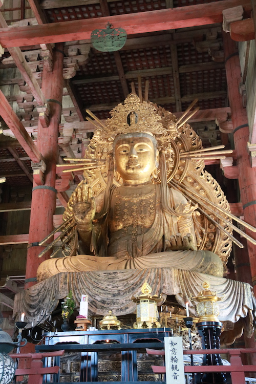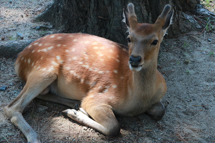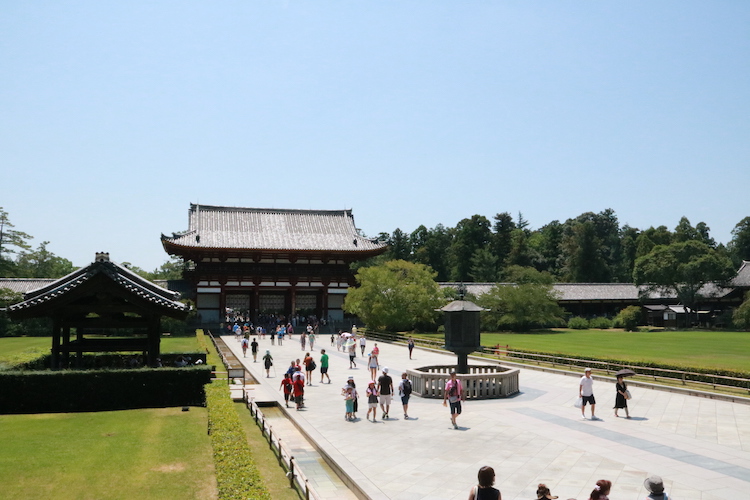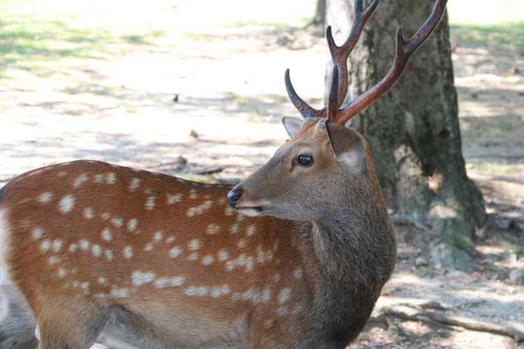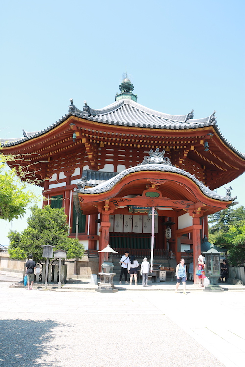 Depuis la gare de Nara, une ligne de bus permet d'accéder à l'ensemble des sites à visiter. Nous optons pour : "Kōfuku-ji", "Tōdai-ji" et "Mizuya Shrine". Une fois à pied, nous nous retrouvons au milieu des daims qui nous réclament des biscuits que nous pouvons acheter auprès des différents vendeurs ambulants.