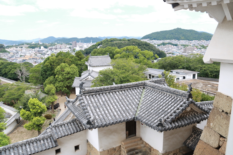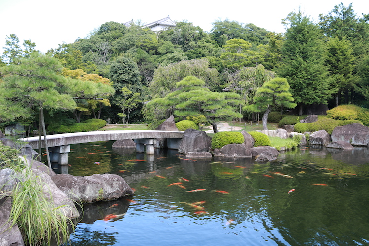 Départ pour Himeji et son château. Le château de Himeji est l'un des derniers châteaux en bois du Japon, il est classé au Patrimoine Mondial de l'Unesco. Je ne sais pas si nous referions la visite du château car, même s'il est très beau d'extérieur, il n'y a strictement rien à l'intérieur. La visite consiste à monter 6 étages par des escaliers assez raides en passant par des pièces complètement vides. Il est plus intéressant de passer du temps dans les jardins autours.