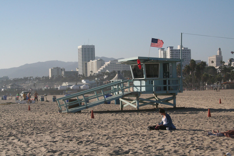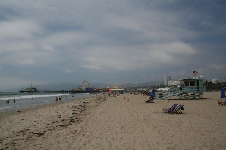 Même si le ciel n'est pas de la partie en ce début d'après-midi, nous profitons de la dernière journée de plage des vacances avant d'entamer nos presque 4000km ... pas de surf mais un petit footing entre Venice beach et Santa Monica beach.
