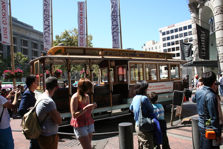 ... on assiste au changement de direction à la main du "cable car" ("The San Francisco Cable Car" sur la carte) ...